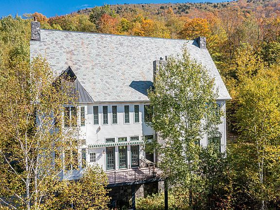 Custom built Dorset Hollow estate offered for the first time since 1998. Located on 10 extremely private acres, this 5,100 sqft home offers 4 bedrooms and five bathrooms, plus a two car attached garage. Many fine features including: four fireplaces, verdi marble flooring, marvin windows, slate roof, viessmann boiler - all top of the line. The living room is exceptional w large wood burning fireplace, surrounded by 8 ft 12 panel Marvin windows, plus second floor crescent shaped windows, with a ceiling height is over 30 feet. The chef's kitchen complete with THOR double ovens, mini wood burning brick fireplace, center island with butcher block top, verdi marble flooring, soap stone counter tops, wood harbor cabinetry, and a built in seating alcove. The dining room offers 12 ft ceilings, crown moulding, and access to an elevated synthetic sundeck. The den is intimate with attractive brick wood burning fireplace, and a wet bar w copper sink. Additionally, the first has a half bath, and laundry room.The second floor is accessed by a custom two story staircase with fluted design. At the top of the stairs are two good size guest bedrooms, a hallway full tile bath, and large walk-in cedar closet. The primary suite (30x14) offers gas fireplace, 10 ft ceilings, crown moulding and wonderful mountain views. There are two walk-in closets, the primary bathroom offers - sauna, whirlpool tub, tile shower, and double vanity sink. The fourth bedroom is also ensuite, and has hardwood flooring.