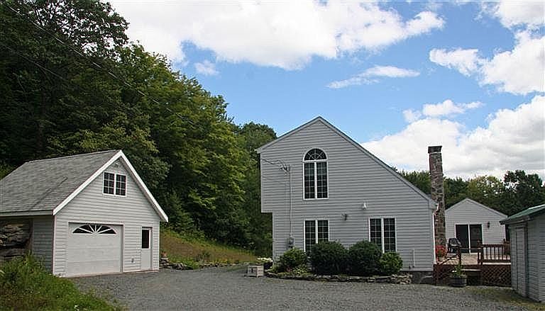 Sundrenched immaculate contemporary. Totally private (no other homes in sight ). Large great room with cathedral ceilings , soaring stone wood burning fireplace and gleaming hardwood floors. Updated kitchen with solid wood cabinets, granite countertops and stainless steel appliance. Main floor bedroom with private bath. The second floor offers two generous bedrooms and a additional bath. Lower level has laundry room , 1/2 bath and large man cave. Large front deck to enjoy world class distant view of mountains and Belleayre Ski Center. Also large heated Hot Tub room brings the outside in. One and one half car garage with semi finished loft. Take a look at this well maintained one owner home.