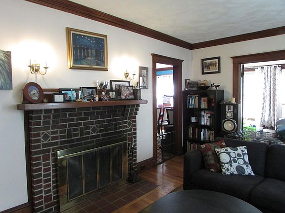 First floor of an owner occuppied two family home with a WORKING fireplace,Dog ok (breed )dependent Garage with another space behind it. Eat in kitchen redone 5 years ago...dw, disposal, gas stove, glass cabinet and pantry. There is a sun room off the living room as well as a dining room. Spacious master bedrrom has another room off it...think walk in closet as well as a regular closet. Second bedroom is is also spacious. Gas heat and new windows. Great fenced in yard. Washer/dryer in the basement..as is. Available 11/1. Call Paula, Broker, 1/2 Fee.