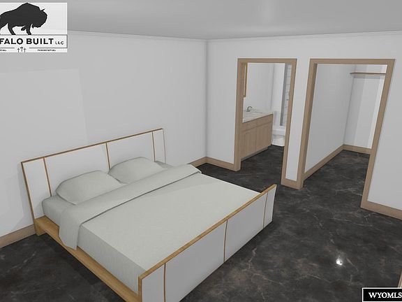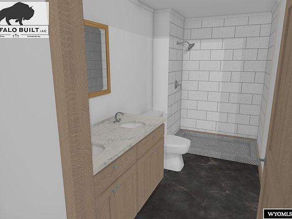 Welcome to 50 Harmony Street, a beautifully crafted zero-entry home in the heart of Buffalo, Wyoming, where modern efficiency meets timeless craftsmanship. Designed with comfort and sustainability in mind, this thoughtfully built residence features dual-zone in-floor heating and an efficient heat pump air-conditioning system, ensuring year-round climate control. An on-demand water heater delivers endless hot water with optimal energy savings. Inside, you'll find durable stained and sealed concrete floors throughout, perfectly complemented by quartz countertops, solid wood cabinetry, and stainless-steel appliances in the kitchen—ideal for both everyday living and entertaining. Solid wood doors and Craftsman-style trim throughout the home add warmth and character, while tile bath/shower surrounds in the bathrooms offer both elegance and easy maintenance. The exterior is equally impressive, featuring EFIS siding with timber accents and stone detailing, all protected beneath a shingled roof. Step outside to your concrete patio and enjoy a landscaped front yard, perfect for relaxing or hosting friends. The insulated and heated 2-car garage includes a convenient floor drain, adding even more practicality to your new home. As a bonus, ownership includes 25% shared interest in adjacent Lot 38A, ideal for off-street parking or storage—to be finished with a layer of rock (see plot plan for full layout).This low-maintenance home is backed by a 1-year builder warranty, offering peace of mind and quality living in a tranquil Wyoming setting.
