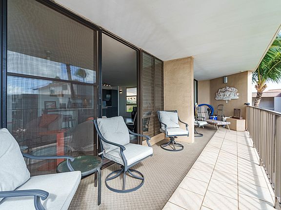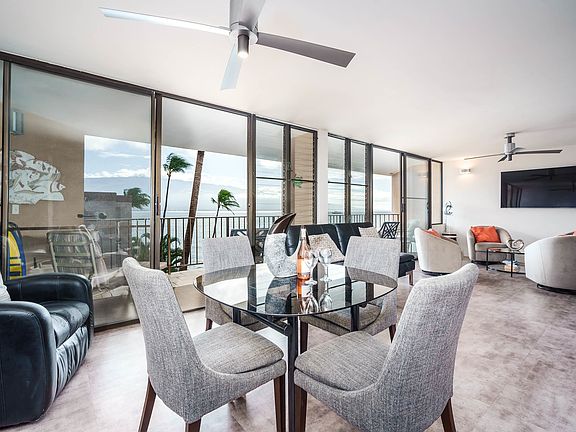 It’s all about the expansive view and wide-open spaces. Tax records designate this as a 2-bedroom condo. It has been meticulously transformed into a spacious 1 bedroom, 2-bathroom corner unit, that sleeps up to six. In addition to the jaw-dropping ocean views over the double lanai, you have a bonus mountain view from the front door and the hallway. The double lanai is like an additional great room where you can enjoy seeing the sailboats bob and whales breach. The great room is truly great. The modern design and décor feature multiple cozy conversation areas. The room flows naturally from the video viewing area to a relaxing indoor ocean view area to the contemporary kitchen. If the kitchen is your thing, you will love the Wolf induction cooktop. The high-end appliances are seamlessly integrated into the custom cabinetry, making them virtually invisible, further carrying out the modern aesthetic of the unit. The flooring is modern luxury vinyl, highlighting the unit's modern aesthetic. The magnificent great room has a full-size kitchen with top-of-the-line digital appliances, including a Wolf Induction range top. The fridge is hidden as part of the custom cabinetry, and the countertop extends around the corner for bar-like seating. There is a large guest bathroom with a glass and tile walk-in shower and a spacious linen closet that extends into a locked owner's closet with additional storage. The bedroom also has clean, modern lines and a large window for natural light. The bath has a bidet, a walk-in, spa-like shower with rainfall and body shower heads, and a closet for storage. There are split ACs in the master bedroom and living area. Milowai's amenities include a heated pool, oceanfront BBQs, nearby shops, and opportunities at the nearby golf course. This unit is a leasehold property and allows short-term vacation rentals. Call your favorite Realtor today and set up a showing!