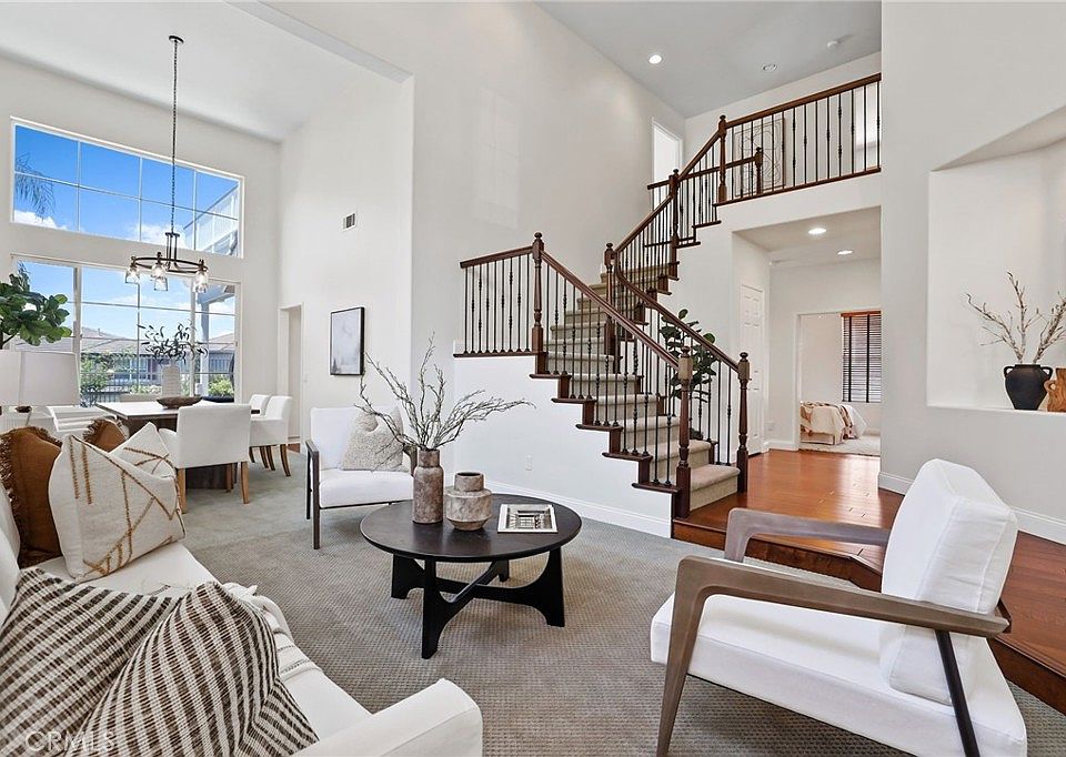 Breathtaking Views! Gorgeous Upgrades! Fantastic Floor Plan! This 5 Bedroom, 3 Bathroom Residence sits on an Incredible Private Lot featuring unparalleled Majestic Views! Located in a Prestigious Resort Style Gated Community, Stunning Views and Quality Upgrades are the Hallmarks of this Exquisite home! Soaring Two Story Cathedral Ceilings, Engineered Hardwood Flooring and Stunning Iron Staircase greets you upon entry and sets the tone of Elegant Design and Luxury evident throughout the home. Enter the Open Great Room and take in the Boundless Views from every angle. The Gourmet Kitchen Features Upgraded Granite Counter Tops, Custom Light Fixture, Stainless Steel Appliances, and is open to the Inviting Family Room. The Spacious Family Room features Beautiful Hardwood Flooring, Built In Speakers, and a Cozy Fireplace perfect for Family Gatherings and Holiday Celebrations. The Highly Desirable Downstairs Bedroom and Renovated Full Bathroom, and Indoor Laundry Room round out the first floor. The Gorgeous Iron Staircase leads to the Impressive Second Floor featuring the 4 Spacious Bedrooms and 2 Bathrooms. The Spacious Primary Suite Retreat provides Views as Far as the Eye Can See from every angle, step outside onto your Massive Outdoor Deck and Enjoy the Sunset! Additional Upgrades include Designer Paint, Custom Designer Window Coverings, 3 Car Garage with 220V. Enjoy Resort Style Lake Mission Viejo Amenities and close proximity to Parks, Universities, and Shopping Centers, Enjoy Incredible Views of Multiple Firework Shows on 4th of July! Beautiful Home..Come see this one in person!