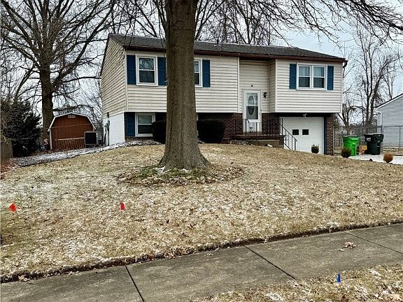 Enjoy this 3 bedroom Updated Bi-level home! Recent improvements include Kitchen cabinets, countertops and bathroom vanity and toilet. Heat pump (central heat/air), All windows replaced as well as the patio door. All new kitchen appliances in 2024, stove, refrigerator, dishwasher and microwave. New LVT flooring throughout the main level, new carpet and LVT lower level and PVC (washable) drop ceiling tiles in basement. Garage insulated, new shed with electric and patio with lighting. LED fixtures and bulbs. Deck on upper level overlooking the large fenced back yard.