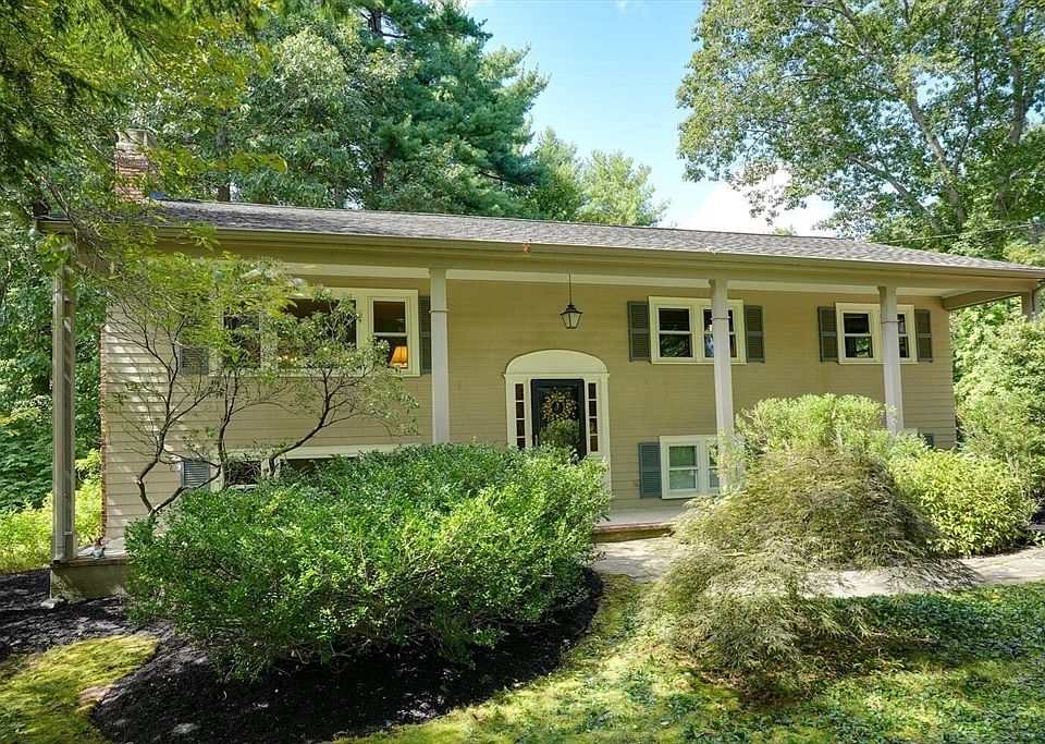 Nestled in a distinctive and tranquil setting, this charming split-entry home offers an inviting retreat with 8 spacious rooms, including 3 well appointed bedrooms and 2.5 baths. Bathed in natural light, the home exudes warmth and comfort. The lush landscaping surrounding the property is adorned with shrubs and vibrant flowering plants creating a picturesque garden oasis. The heart of the home is the updated kitchen, a true culinary delight with custom cherry cabinets, granite counter tops and stainless steel appliances.A skylight bathes the space in sunlight, while a stylish peninsula defines the kitchen and dining room. An updated full bath, the spacious primary bedroom with updated half bath and two additional good -size bedrooms, a living room with a fireplace round out the first floor. Moving to the lower level is the comfortable family room with a fireplace + large picture window, an office + laundry rm. with 3/4 bath. A hidden Gem!
