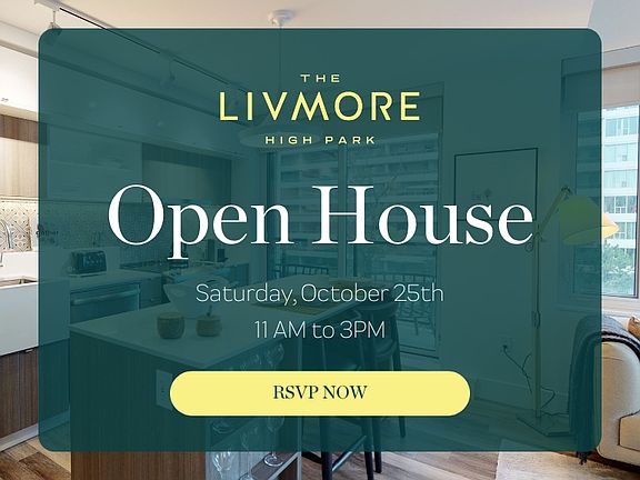 - Special offer! Open House - Join us for an Open House at The Livmore High Park on Saturday October 25th from 11am - 3pm and take a look at our latest Suites! RSVP Today!