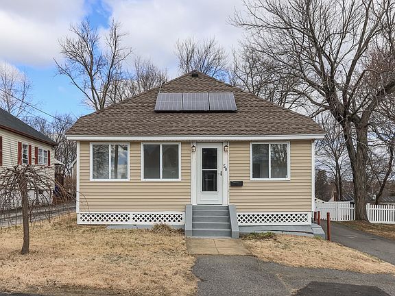 Move-in ready ONE LEVEL Bungalow on quiet, dead-end side street! Step into the sunny enclosed 3 season porch to a spacious living room with two adjacent bedrooms, freshly painted with new carpet. Updated eat-in kitchen with stainless steel appliances, granite countertops, tile back splash, wood cabinets. Primary bedroom off kitchen offers a walk-in closet with built-ins. A full bath with new plumbing fixtures, tile floor. Convenient mudroom with access to a large deck, ready for barbequing! A level, fenced back yard offering space for a garden! The lower level has a tankless on demand natural gas heat and hot water system. Laundry hook-ups. Energy saving solar panels provide low cost electric bills with no monthly lease! Paved driveway provides ample space for 4+ vehicles, or a motor home. Convenient south Manchester location. Minutes to major highways, shopping and amenities. Ready for immediate occupancy!