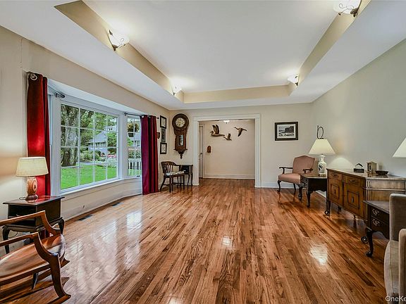 Quiet cul-de-sac location overlooking wooded hillside offering privacy and peacefulness is this meticulously maintained, expanded ranch in charming Port Jefferson neighborhood. Everything updated or replaced within the last 12 years, from roof to utilities. Flowing hardwood floors, trey ceilings, extensive trim work, updated kitchen and baths. Updated heat pump, central air conditioning, 200 amp electric and roof. Bathrooms offer all new fixtures and curb-less showers. Full basement is partially finished with den, full bathroom, walk-in closet room, utility room and expansive unfinished work room with staircase up to 2 car+ garage. Low maintenance yard is a private retreat with a tree-top view deck. Tax Grievance available, home is assessed at $990,000 with TOB. (Estimated 20% reduction.) Village grievance opportunity as well. Estimated reduction of $4,000+.