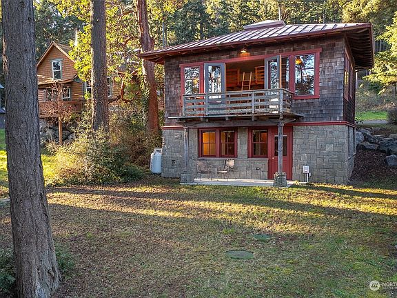 Short walk to Eastsound Waterfront Park from this ideal getaway, full-time residence or transient rental. Warm and inviting, this lightly used (part-time) one-owner home has beautiful wood throughout & cozy radiant floor heating on both levels. Lounge by the great room's corner fireplace & bask in year-round light from 3 walls of windows & a unique pyramid skylight. The timeless kitchen has cherry cabinets, granite tile counters, refinished butcherblock & brand new stainless appliances. Enjoy meals on the deck with sparkling views through the trees; sip coffee on patio below and plan a walk to town. Bedrooms, full bath & laundry on lower level, plus a sleeping loft and full bath on main level. Easy-care yard and handy 2-car carport w/shed!