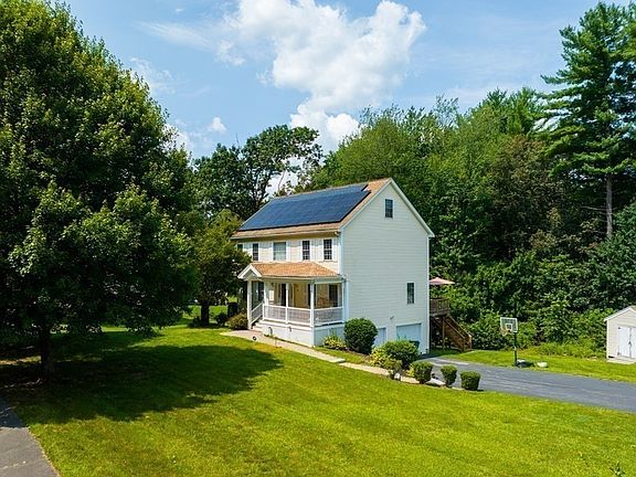 Beautiful 4 bedroom, 2.5 bathroom single family home with a 2 car garage set on over half an acre in a calm cul-de-sac. This home has four spacious finished stories of living space. Enjoy relaxing on the quintessential New England farmer’s porch or back deck. Living room has a modern TV panel. Bright large eat-in kitchen with new quartz countertops and island, new tiles and backsplash with open-concept dining room. Bonus room on first floor now used as a walk-in closet and small office. All bathrooms are fully renovated with a modern touch, bluetooth mirrors, and luxury porcelain tile flooring. The first-floor half bathroom has an attached laundry room. Second floor features gleaming new hardwood flooring. Master bedroom has a master bathroom with an exquisite shower as well as a walk-in closet. Spacious finished attic can be used as a 4th bedroom or a bonus room. Family room located in finished basement. Property has a full irrigation system. Solar powered