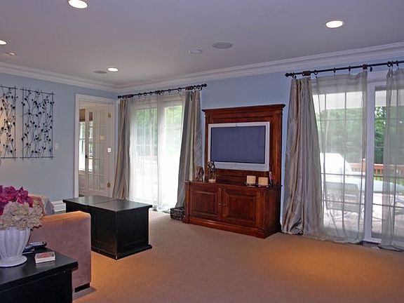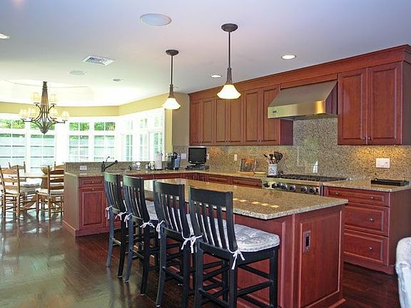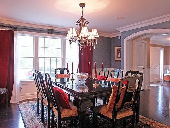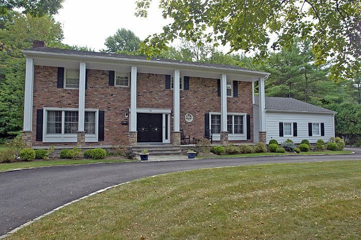 Located on a quiet cul-de-sac in the Mountain Top section, this classic center-hall Colonial sits grandly on over one-half acre of green lawn framed by manicured shrubbery and tall shade trees. A circular driveway leads to the stately two-story front porch. Recent renovations and updates ensure maximum convenience and comfort. Privacy is guaranteed by the exquisite location next to quiet parkland, yet you are just minutes away from top-rated schools, shopping, and NYC trains.Inside, gleaming dark hardwood floors flow through rooms divided by elegant barrel archways. The living room has elegant picture frame molding and shares a dramatic stone double-sided gas fireplace with the office/den. All of the rooms enjoy abundant natural light from large windows.The professional designer kitchen is truly the center of the home with plenty of space for cooking as well as seating areas at both the large island and a dramatic half-octagonal breakfast area with four sets of windows. Sliding glass d