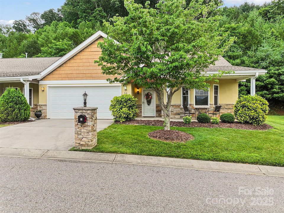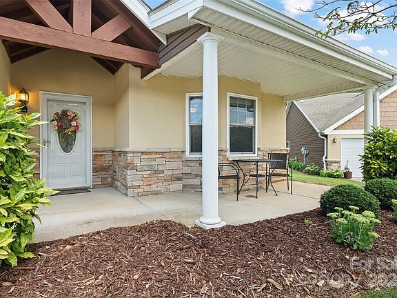 Rare opportunity in The Vistas at Castle Creek community is this immaculate and beautiful 3BD/2BA one level living end unit Townhome. This amazing unit boasts beautiful granite top kitchen with SS Appliances, dining area, laundry room, spacious high ceiling living room with Natural Gas Fireplace, large primary suite with walk in closet, double vanity and tile shower, 2 additional spacious bedrooms and full hall bathroom. 2-Car garage, back patio, back yard common area, and a peaceful rocking chair front porch to enjoy the best mountain views in the neighborhood completes this wonderful opportunity! Minutes to the hospital, I-40, Vibrant downtown Waynesville, grocery stores, restaurants, and so much more!