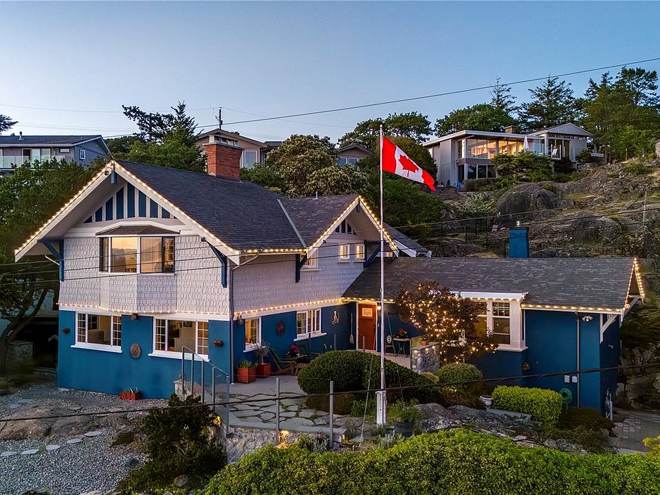 Admire some of Vancouver Island’s most picturesque coastline from your cherished character home in Oak Bay! This stunning arts and crafts example has been carefully updated over the years to offer modern conveniences with all the warmth and elegance of yesteryear. Inside, you will find character details consistent with the era including 4 ornate FPs, oak/fir flooring, and extensive millwork. The main living areas are framed around the view and are flooded with south facing sunshine. Unique family room with 11' barrel ceiling features pendant lighting, gas FP, and a steel vault. Upstairs there are 4 bedrooms, laundry, and 2 bathrooms. 2 options for a primary, with dual WICs, are connected by a sun room with breathtaking views of Gonzales Beach, Harling Point, Clover Point, and Olympic Mtns. Exterior updates include: entry gate, hardscaping to create beautiful outdoor living areas, as well as a detached garage. A built-in sound system, outdoor FP, and sauna complete this unique offering!