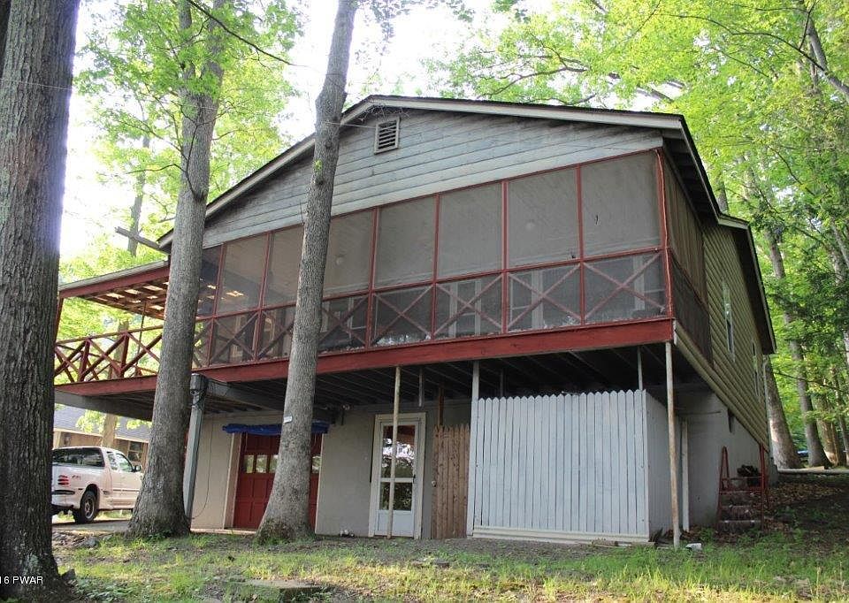 Nostalgic, charming Wallenpaupack Lakefront! Gentle slope to waters edge. Home features Knotty Pine interior, eat-in kitchen, living room w/ Brick fireplace, master suite with half bath, 2 additional bedrooms, full guest bath, full unfinished basement with 3/4 bath and garage door to bring in toys or boat, large screened porch overlooking lake, deck, 2 car carport and paved driveway. Owned by the same family for 30 years! Minutes to restaurants and town of Hawley.