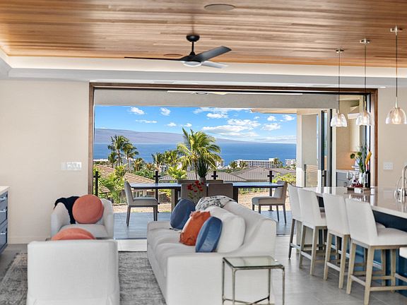 **New Construction** Welcome to 50 Lewa Lani Place, a stunning new architectural gem in the upscale Lanikeha community. This is a 3,708 sqft 4 Bed 4 bath home will captivate even the most discerning buyers with its striking design, luxurious finishes, and breathtaking views. You'll be amazed by the endless ocean vistas, the picturesque islands of Lanai and Molokai on the horizon, and the spectacular sunsets that Maui is known for—these experiences will transform your lifestyle and leave a lasting impression. Every aspect of this home has been thoughtfully designed to provide a life of unmatched comfort and elegance. It offers complete privacy through stone walls surrounding the property. On the main level, an open-concept layout welcomes guests, which is ideal for entertaining or quiet relaxation, with beautiful tile flooring throughout. The chef's kitchen is a dream, featuring elegant quartzite countertops, high-end Thermador appliances, and custom cabinetry. Next to the kitchen is a spacious living room with a large sliding window bay that invites the natural beauty of Maui indoors. The primary suite boasts stunning ocean views on the upper level, framed by sleek, smart privacy glass and clear lanai railings. As the sun sets, you can quickly reveal a disappearing flat-screen TV that descends from the ceiling, offering seamless entertainment whether you're unwinding in bed or on the lanai. The main floor includes a conveniently placed powder room, a dedicated laundry space, and a two-car garage with two Tesla Powerwalls. Moving down to the lower level, you'll find a peaceful area featuring a guest bedroom and a second master suite with smart privacy glass. The expansive secondary living area has a top-of-the-line surround sound system, providing a smooth transition to the outdoor retreat that includes a stainless steel barbecue and a custom quartzite countertop. Experience cutting-edge smart home technology throughout this property. With a touch of the "Welcome Home" button, the lights turn on, shades open, and your favorite audio or video devices activate. When it's time to leave, a simple "Goodbye" button tap conveniently powers everything down. Every element of this home exemplifies exceptional quality, with systems such as Daikin climate control, sophisticated lighting, automated shades, superior sound, and smart privacy glass in both master suites, all easily controlled via modern wall-mounted touchpads or your iPhone. Combining sustainability and elegance, this home features Tesla photovoltaic panels and dual Tesla Powerwalls discreetly integrated into the two-car garage, ensuring incredible energy efficiency and reliable power during outages. Furthermore, this home comes fully furnished and move-in ready, with each piece carefully chosen by an award-winning interior designer from Restoration Hardware, making for an effortless transition into your new lifestyle. Lanikeha boasts a double-gated community of only 136 luxury residences across 110 acres in the highly sought-after Kaanapali Golf Estates neighborhood. It's just moments away from two renowned 18-hole golf courses (Kaanapali Royal and Kai) and a short golf cart ride to the stunning Kaanapali beaches, where you can enjoy fine dining, shopping, surfing, snorkeling, or simply stargazing along the beach boardwalk at sunset. Residents of Lanikeha also gain exclusive access to outstanding amenities, including a $3.5 million clubhouse featuring an expansive infinity pool, spa, state-of-the-art fitness center, game room, meeting rooms, an outdoor kitchen with multiple barbecue stations, and an entertainment pavilion. 50 Lewa Lani Place is more than just a residence; it represents the pinnacle of contemporary living in Maui. Don't hesitate—seize the opportunity to claim your place in this exclusive community and discover a home that surpasses your expectations.