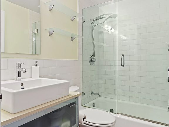 Beautifully renovated 1 bedroom, 1.5 bath home with a private balcony leaves nothing to be desired. The spacious living room gets brilliant Southern light through floor to ceiling windows leading to the balcony and is large enough for a dining area. The gorgeous pass through kitchen with granite counters, ample cabinetry and a nice suite of appliances makes cooking a pleasure. The large bedroom with spacious and customized closets features an en-suite bath and is pin-drop quiet. Off the foyer, you'll find a 1/2 bath for your guests.