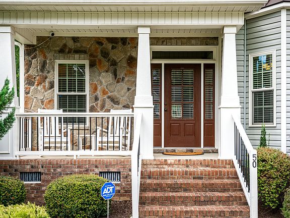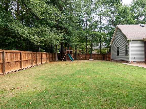 This stunning custom-built home offers an inviting blend of style, comfort, and craftsmanship. The main level features rich hardwood floors, a two-story foyer, and elegant details such as chair rail, crown molding, recessed lighting, and a coffered ceiling in the dining room. The gourmet kitchen boasts granite countertops, stainless steel appliances, a pantry, and plenty of cabinet space. The primary suite is conveniently located on the first floor, featuring a tray ceiling, dual vanities, a walk-in tile shower, soaking tub with tile wainscoting, and a private water closet. Upstairs, you'll find three additional spacious bedrooms, a full guest bath with dual vanities, and an unfinished storage room off the bonus room. Additional highlights include ceiling fans, gas log fireplace, and an oversized garage with a side entry door and high ceiling. Outdoor living is easy with a screened porch, covered porch, and a stamped concrete patio overlooking the wood-fenced backyard. This home truly has it all!