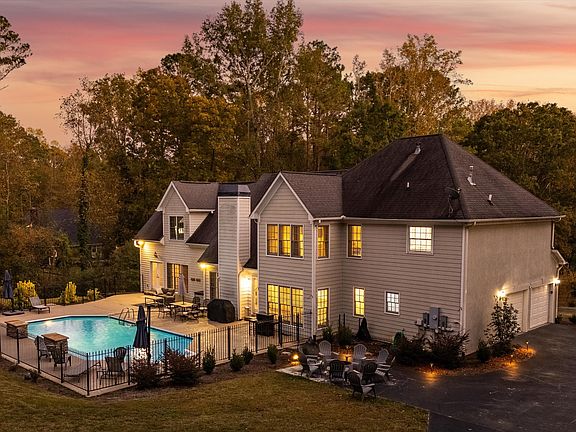Welcome to this impressive Newnan estate, offering multiple living spaces, a sparkling heated pool, and a private pickleball court, all set on a secluded, picturesque lot. Step through the front door to find a formal dining room with a bay window and an office with double doors. The heart of the home is the inviting living room, featuring soaring ceilings and a beautiful fireplace. The open-concept kitchen includes stainless steel appliances, a tile backsplash, a pantry, and plenty of cabinetry, with an eat-in dining area that overlooks the backyard oasis. Just off the main living room is a large secondary living space complete with built-in cabinetry and an entertainment center, an ideal spot for gatherings or movie nights. This home features two primary suites, each offering privacy and comfort. One suite is completely separate with its own staircase and an en suite bath featuring a large stand-up shower. The second primary suite, accessed by a separate staircase, includes a spacious sitting area, a luxurious en suite bath with a soaking tub and tiled shower, and a walk-in closet. Two additional guest bedrooms and a full bath complete the upstairs. Step outside to your private retreat featuring a pool with dual waterfalls, lounge seating, and a Cool Deck surface. Enjoy your own pickleball court, firepit area, and plenty of room for recreation or relaxation. A shed provides convenient storage for outdoor essentials, and parking is plentiful with both an attached two-car garage and a detached two-car garage, plus an extended driveway and RV parking with 50-amp electrical service. This remarkable property has it all just minutes from everything Newnan has to offer. Southeast Mortgage is our preferred lender. If buyer chooses to work with them, Southeast Mortgage will provide 1% credit up to $5,000. Reach out to the listing agent for more information.