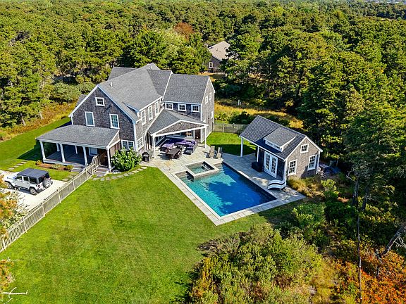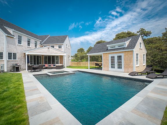 Just minutes from Surfside and Nobadeer beaches, this 3,800 sq. ft. Nantucket home is set on nearly three-quarters of an acre with outstanding outdoor amenities. A heated Gunite pool with integrated spa, bluestone patio, and cabana create a private retreat in the fenced backyard, designed for effortless summer living and entertaining. Inside, three finished levels offer abundant natural light and flexible spaces for family and guests. Mature trees frame the property, while the setting across from 143 acres of State Forest provides both privacy and access to miles of walking and biking trails. With close proximity to the South Shore beaches and the anticipated Lovers Lane bike path project, this Surfside property offers a rare balance of lifestyle and long-term value.