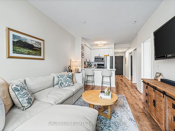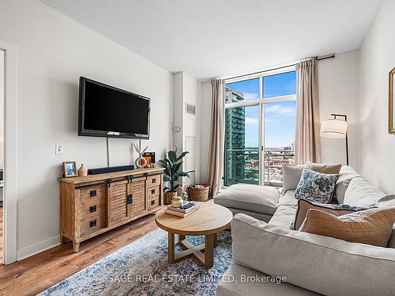 Top-floor Penthouse living in Liberty Village. This updated 1 + den sits on the very top floor with no neighbours above and the brightest natural light in the building. Enjoy sweeping southwest lake views from an airy, open-concept layout with unique 9 foot(!) floor-to-ceiling windows. The kitchen features quartz counters, updated cabinetry with new hardware, and stainless-steel appliances including a new fridge. This home has been freshly painted with new flooring throughout, updated door hardware, and a new washer and dryer. The den is a true separate space, ideal for a home office or gym, and the laundry room provides highly functional in-suite storage. Custom California Closets in the bedroom add a refined touch. Ideally situated in the heart of Liberty Village, steps to the park, shops, cafes, and transit, with easy access to Trinity Bellwoods, the waterfront, and the CNE. Resort-style amenities include multiple gyms, party rooms, a movie room, billiards room, indoor pool, hot tub, and steam room, plus the pedestrian bridge to King Street West. Parking included.