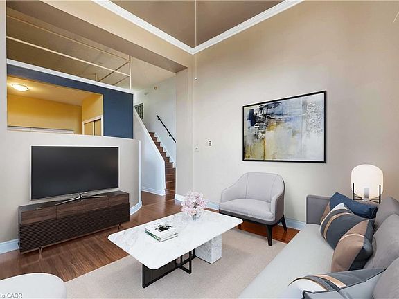 Urban Style Meets Small-Town Charm in Downtown Dundas Welcome to The Mainhattan, one of Dundas’ most sought-after condominium residences, perfectly positioned in the heart of downtown. This two-level, 1,182 sq. ft. home (as per MPAC) combines modern design with historic charm, offering a lifestyle that’s as vibrant as it is convenient. Step inside and you’ll immediately appreciate the open, airy feel—thanks to well-placed structural beams that maximize flow and light, setting this unit apart from similar layouts in the building. The soaring ceilings and sun-filled family room create a dramatic yet welcoming space, while the main floor offers flexibility with a bedroom or den, a stylish two-piece bath, and an open-concept kitchen overlooking an oversized dining area, perfect for both hosting and everyday living. Upstairs, the loft-style primary suite is a true retreat, complete with a newly renovated three-piece bathroom featuring a sleek standing shower. Thoughtful details continue throughout, with private parking, a large storage locker, and bike racks all included. Convenient elevator access ensures ease of living. Beyond your door, Dundas unfolds at your feet. Wander the charming historic streets, sip coffee at local cafés, explore boutique shops, or indulge in the town’s farm-to-table dining scene. Outdoor enthusiasts will love the proximity to the Dundas Valley Conservation Area, with its waterfalls, trails, and breathtaking scenery. McMaster University, Dundas Driving Park, and popular cycling routes are just minutes away. As a resident of The Mainhattan, you’ll also enjoy exclusive access to the rooftop patio, ideal for relaxing or taking in panoramic views of this picturesque town. Don’t miss this opportunity to call downtown Dundas home. Book your private showing today.