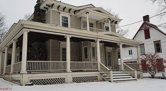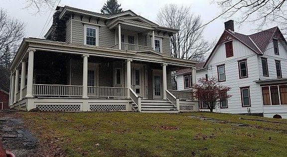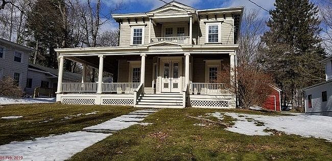Large colonial home on Main Street. Beautiful stone fireplace, open staircase. Some stain glass accents, hardwood floors and some original wood details.