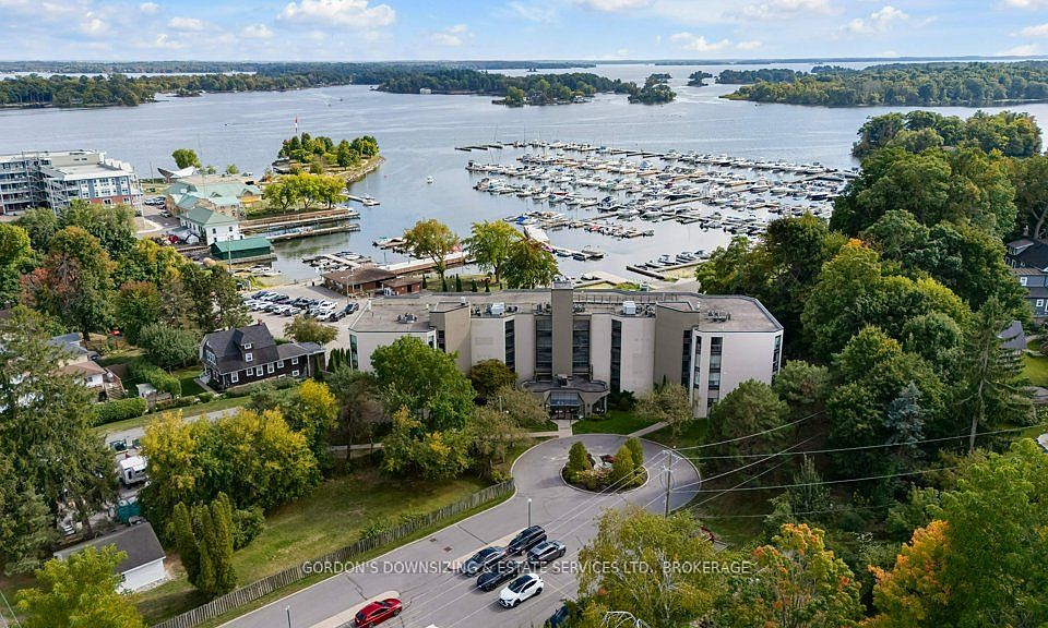 Unit 105 at The Commodore offers approximately 1,420 sq. ft. of comfortable, easy access living in one of Gananoque's most sought-after locations. Nestled on nearly 2 acres of beautifully maintained grounds, this residence combines convenience with a worry-free lifestyle right in the heart of the Thousand Islands. This spacious condo includes 2 bedrooms, 2 full bathrooms and a generous living/dining area. A dedicated laundry room comes equipped with a stacked washer and dryer and storage space. Being on the ground floor makes this unit especially accessible, while still offering privacy and easy access. The home is move-in ready with existing appliances, an owned hot water tank, deeded outside parking spot and a storage locker included. There is plenty of outside parking for guests or a second car. A rare highlight of this condo is the large wall to ceiling new windows, private outdoor space, accessible from two different rooms, creating a seamless connection between indoors and out. The Commodore is a pet-friendly community with excellent amenities, including a party room, workshop, fitness center, and bicycle storage. From here, you can walk to local restaurants, shops, the Playhouse Theatre, and nearby parks - or simply enjoy the scenic views of the Gananoque Marina, and Islands just steps away. Status Certificate available. Offers will be presented on November 4th.