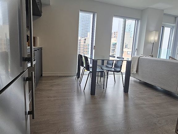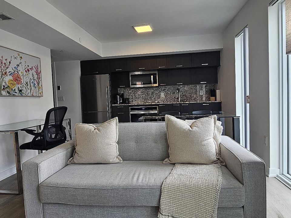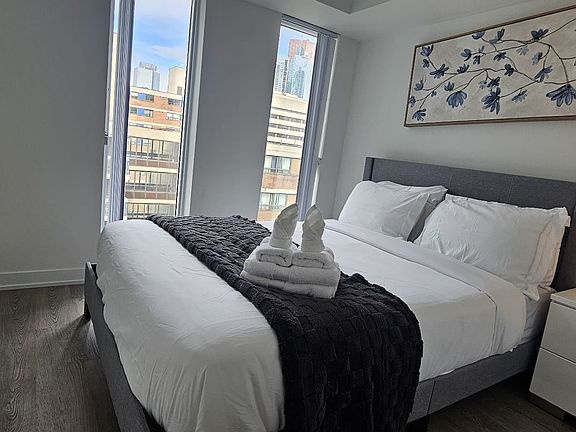 Welcome to Form Condo, offering an upscale boutique experience in the heart of Downtown. Fully furnished 2 bedroom 1 bathroom suite offers ensuite laundry, high-speed Fibre Internet, smart TV, 24-hour concierge, fitness centre, and more. The suite has a fully equipped kitchen with fridge, stove, dishwasher, microwave, 2 queen beds, dedicated workspace with desk and chair, comfortable living room with smart TV, and dining area for 4. Professionally managed by TO Stays Inc., 30 nights minimum.
