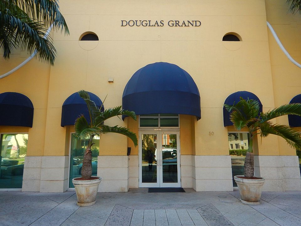 Sophisticated 1/1 residence located in the prestigious Douglas Grand Condominium with concierge, fitness, pool & more! The unit features wood & tile flooring, a stunning kitchen with custom cabinetry, stainless appliances, solid surface countertops & a breakfast bar overlooking the living dining area. Sliding doors from the living area open onto a balcony with sweeping skyline views. All Information recorded in MLS is intended to be accurate but not guaranteed, buyer advised to verify. Sold As-Is.