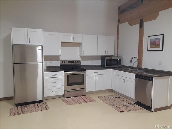 Newly Remodeled studio condo! Brand new stainless steel appliances in kitchen. Newly installed bathroom shower, vanity and bathroom flooring. Ideal set up for an artists studio or live/work. The building has been completely rebuilt and brought up to code including bathrooms, ADA outside entrances, insulated garage doors, new windows, electric and plumbing. Located in Yampa's in business area. Could be a great full-time or weekend getaway property with low maintenance and great access to the Flat Tops with all of it's fishing, hiking, camping , hunting, and recreational splendor. Some tenant finish will make this unit to your own specifications. Owner may add outside storage and a patio or deck to their limited common area beyond the full glass insulated back door.