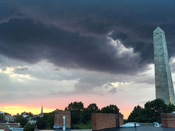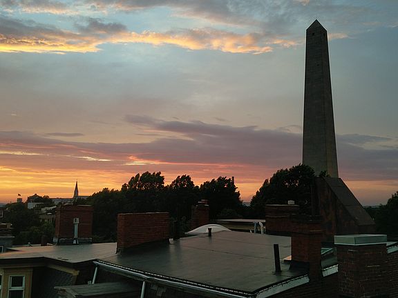 Rarely available penthouse condo on much desired corner of Monument Square. Stunning views from most every room of this distinguished floor thru two bedroom. Old world charm with period detail and high ceilings lead you from the foyer into the cozy living room with fireplace. Over sized windows throughout offer direct view of the Monument on one side with sweeping views of the city on the other. Plenty of closet space with large pantry in dining room, as well as walk-in closet accessible from both bedrooms. Formal dining room leads to spacious kitchen with custom cherry cabinets and breakfast nook. Corner seating area offers additional views of the city. Added bonus of having easy access to roof top with panoramic views of the city and beyond.