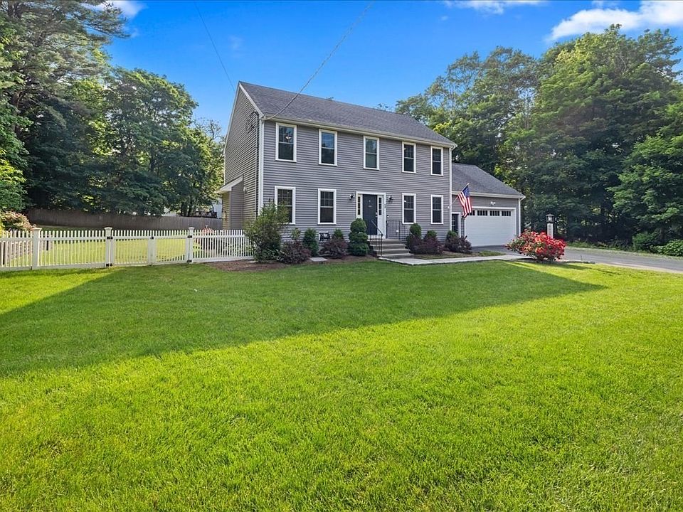 Open Houses cancelled due to an accepted offer! This stunning home at the end of a quiet street shows like new—built in 2017 and impeccably maintained. Set on a flat, professionally landscaped half-acre with irrigation, it offers a show-stopping outdoor living space featuring a custom patio, wood-burning fireplace, and plenty of room to entertain or unwind. Inside, you'll find 3 bedrooms, 2.5 bathrooms, hardwood floors throughout, and leathered granite countertops in the kitchen and baths. The eat-in kitchen features white cabinetry and a gas stove. Kitchen flows into the dining and living areas with sliders leading right to the backyard oasis. Thoughtful features include a mudroom with built-in cubbies off the garage (with EV charger hook-up), 2nd floor laundry, and a spacious primary suite with both a walk-in and additional closet. Full finished basement rough plumbed for a bathroom—perfect for future expansion. A true turn-key home where every detail shines.