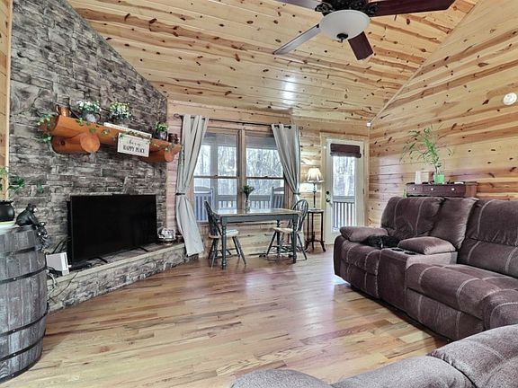 Embrace the mountain life in this cozy cabin surrounded by forest in the ever-popular upscale Eagle Mountain of Coosawattee River Resort with a variety of amenities including indoor/outdoor pools, campsites, golf, game room, a library, pavilions & so much more. Updates and improvements throughout the home such as new appliances, HVAC, washer/dryer, and screened-in back porch with front row seats to wildlife viewings! Open layout makes for convenient one level living space. Beautiful stack stone FP in living room with log mantle. Spacious kitchen area with island for additional seating and cabinet/counter space. Master BR with walk-in closet plus another BR/BA for hosting friends and family. Unfinished basement can be made to match your vision. Located less than 10 miles from DT Ellijay!