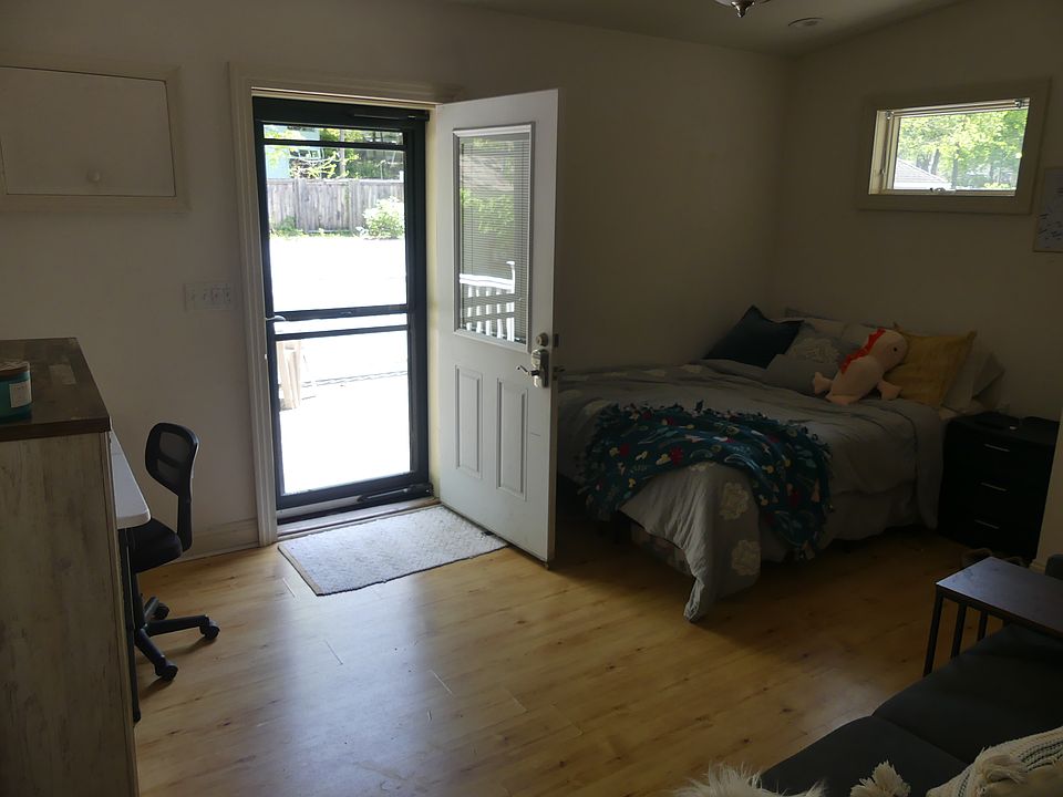 Spacious private room on the first floor with its own coded entry and private bathroom. The room offers ample closet space and easily fits a bed, desk, and couch. Enjoy direct access to a private deck and the parking lot for quick, convenient entry and exit. All utilities are included.