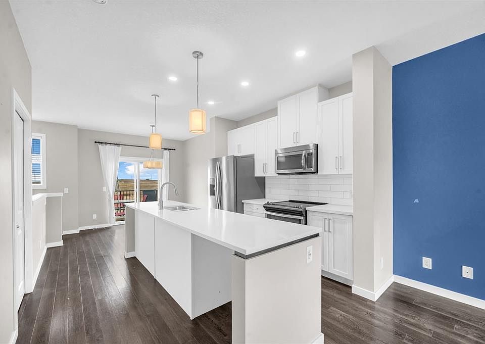 Walkout lotBacking onto green spaceWalking trailsOpen-concept designModern cabinetryStainless steel appliancesLarge centre island