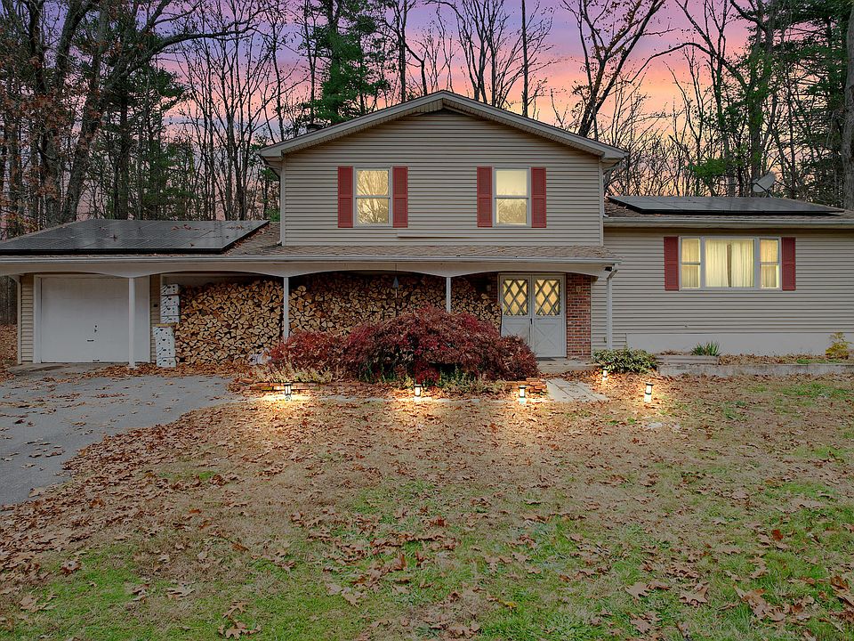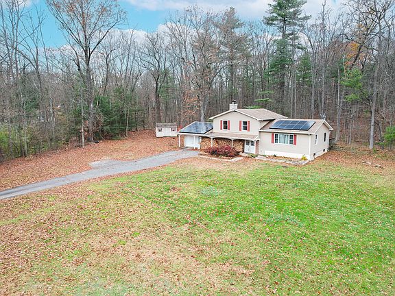 Set your sights on this remarkable find in Farmington's Highlands neighborhood! This 4 bedroom, 2 bath split level home sits on a private 5.98 acre lot at the northernmost cul-de-sac of one of Farmington's most desired communities. Inside, you will find an inviting eat in kitchen with an island, double wall oven, recessed lighting, stainless steel appliances, and french doors all complemented by hardwood floors that run throughout the home. The primary suite offers access to the full hall bathroom with a double vanity, while the remaining bedrooms provide comfortable space for family, guests, or a home office. Additional highlights include solar panels, a generator, and central air. The rec room area features a fireplace, access to a 4th bedroom and full bath, perfect for 1 floor living. The attached two-car garage adds convenient storage and parking. Detached barn and shed provides additional storage and work space. Put your special touch on this home and make it your own. This prime location is just minutes from Farmington Rail Trail, the public library, shopping, recreation, restaurants, and brand new Farmington High School. Buyer to do due diligence if the property can be subdivided.