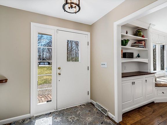 Fabulous Bedford location! Great neighborhood setting with easy access to amenities and highways for quick commuting. The house is set back on a large open front yard with mature trees and curated rocks for a lovely landscape palette. A curving walkway leads you inside the home to a bright space filled with custom built-ins galore throughout. The unique floor plan allows for flexible use of space. Need a dining room? Got it! Need a home office space, a workout space, or a playroom? It's all here! Curl up with your book on one of the three built-in window seats. The three-season sunroom has windows all around to enjoy the bright back yard space. The kitchen boasts a 14' island with a walnut countertop and lots of seating, bring your vision to freshen this space to make it your own! The sunken family room has a cozy feel with stone-surrounded gas fireplace and a soft-underfoot cork floor. Hardwood flooring through many of the rooms. The second floor has four bedrooms, a hallway library, plus a bonus room over the extended garage for additional sleep/play/craft/work space. Lots of storage, and a large shed in the backyard for your outdoor toys. The house has solid bones and with some fresh updating this could be your forever home! Seller holds a NH real estate license. Quick close possible!