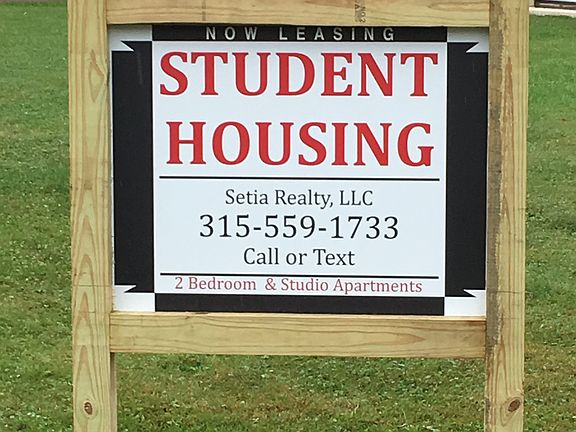 Nice, safe and clean student apartment for SUNY Cortland or TC3 off-campus housing. The student apartment is furnished and rent includes all utilities, snow removal and trash service. NO animals and NO smoking. Student pays for own WiFi. Laundry facilities are on site. 2-minute walk to local grocery store. This 2-bedroom apartment is renting for $3,650 per semester ($812 per month) per bedroom per student. If student wants to live alone in 2-bedroom apartment, please call for specific rate. Renting now for 2025-2026 school year.