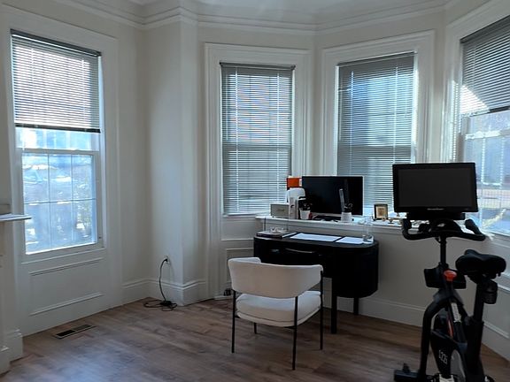 Spacious three-bedroom, three-bath unit in a three-family building, available for long-term (12-month).