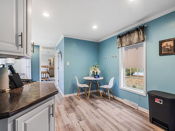 Crown moldingOne floor livingLaminate flooringLaundry roomCarpeted bedroomsGas stoveSheet rock walls