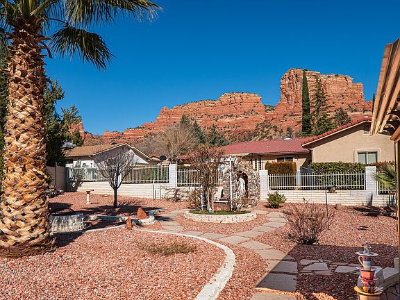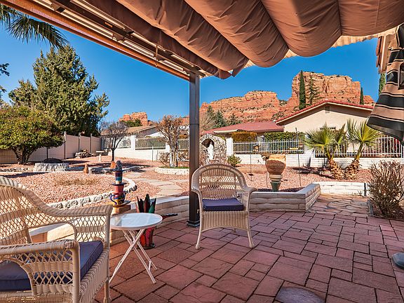 Escape to a stunning furnished 3-bedroom, 3-bathroom retreat in the heart of Sedona's Village of Oak Creek. Built in 1976, this single level home has been completely remodeled and boasts over 1,700 square feet of beautifully appointed space, featuring hard surfaces throughout; a beautifully remodeled kitchen; a cozy, carpeted primary bedroom complete with en-suite; and two guest rooms, one of which is can either act as a bedroom or an office space that's easily convertible. Enjoy breathtaking Red Rock views from the home, relax by the private pool, and stay active in the small, on-site gym.