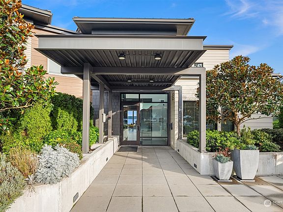 This incredible one-level condo offers 2 bed, 1.75 baths with a wall of windows showcasing Sound & mountain views from every room, along with upgraded designer finishes throughout. The chef’s kitchen featuring quartz countertops, euro-cabinetry, SS appliances, & eating bar perfect for entertaining! Additional features include wide-plank hardwoods, high ceilings, electronic blinds & great natural light. Primary suite includes a spacious walk-in closet & spa-like bathroom. Generous 2nd bedroom with walk-in closet, full bath & in-unit laundry/storage & more. Enjoy a spacious patio with views of Puget Sound & Mt. Baker. 2 dedicated parking spaces included. Amenities include a rooftop view terrace with BBQ, owners' lounge, elevators & a full gym