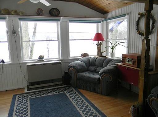 Spectacular view of the lake to enjoy nature every season of the year. Enjoy boating and swimming from the public right of way diagonally across from the driveway! There is open mooring for a boat on the lake or take advantage of the sandy town beach. This home is designed to welcome nature into your living space. Features include updated oak kitchen with breakfast bar, double sink, updated dishwasher, gas stove. Updated bath with granite counter, whole house water filtration system, foam board insulation, thermopane windows, laminate wood floors. first level laundry. The large deck off the kitchen is perfect for entertaining and has its own unobstructed views. Have friends over for a cookout or just sip coffee in the morning, read the paper and just enjoy the breezes off the lake. A perfect home for summer entertaining!