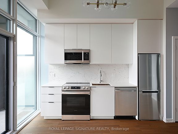 Stylish 1-Bedroom Loft style condo for Lease in Toronto's Vibrant East End Minutes from the Historical Distillery District!Looking for a unique and modern space to call home? This beautifully updated1-bedroom suite is packed with character and charm perfect for urban professionals, creatives, or anyone craving a cool city vibe.Soaring 10'+ ceilings, an exposed brick feature wall, an open-concept layout gives this suite serious loft-style appeal. The sleek kitchen includes tall custom cabinets,quartz countertops, and a matching backsplash ideal for cooking or entertaining.The primary bedroom features a custom-built Murphy bed with a fold-down work desk, offering smart use of space and flexibility.Step outside to your own private balcony for morning coffee or a quiet evening to unwind. Just steps to the Distillery District, TTC transit, dog park, cafes, and shops.Quick access to the Gardiner Expressway and DVP, and only minutes to Leslieville And the iconic St. Lawrence Market. Don't miss this rare opportunity to lease a one-of-a-kind suite in one of Toronto's most dynamic Neighborhoods!