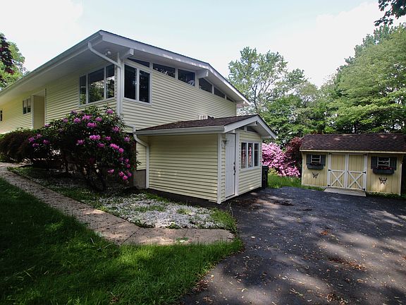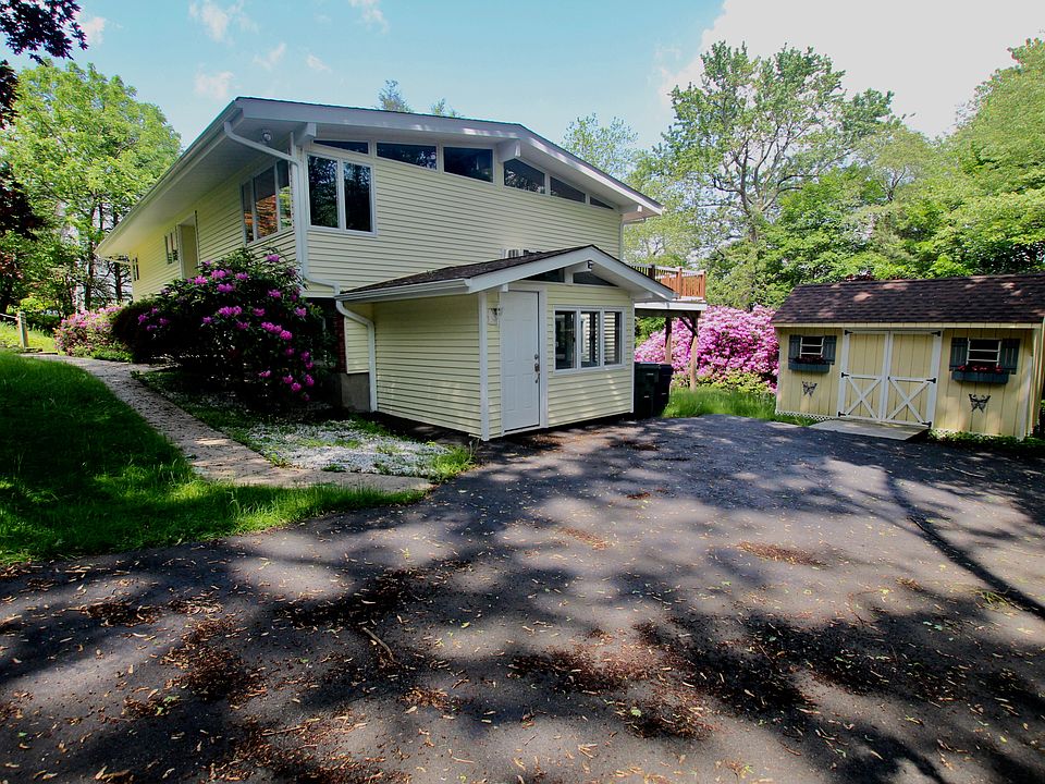 You will enjoy every season of the year when you live in this wonderful home. The beautiful specimen plantings & recently replaced custom designed deck will add to your pleasure & comfort. It can be entered from both the dining room & large eat-in-kitchen which was completely renovated & upgraded. Some of the special features include top of the line appliances, granite counters & a great eating area. There are hardwood floors in the 3 bedrooms & dining room, which is adjacent to both the kitchen & great room. The bathrooms were also renovated & the interior just painted. The unique lower level has a family room with a wood burning stove & sliding glass doors to the large back yard. There are 3 finished storage rooms, (2 were part of the original garage), lots of windows, a full bathroom, utility closets & an entrance from the parking area. The driveway was repaved & the charming shed can be used for a variety of purposes. Special home, special features, special setting!