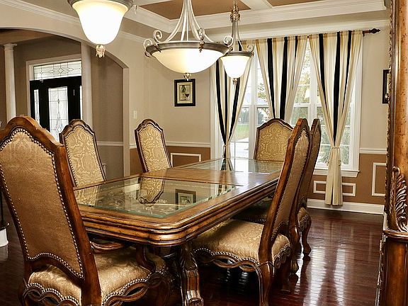 This gorgeous very spacious home is an entertainers dream home! The BEST VALUE per sq,ft! This 5686+sq.ft property offers exceptional amenities located in the desirable community of Kings Gate East. Backs up to a large open grassy area with walking path offering ample space for children and pets to play. Enter the home to enjoy a large two-story foyer, formal living and dining rooms with crown molding, hardwood and custom lighting. Spacious living room leading directly into a private office with 3 walls of windows, tray ceiling with audio/video/tv. The beautiful formal dining room with crown molding and coffered ceiling is ideal for holiday dinners and relaxed Sunday dinners with the family. The dining room leads directly into the butler pantry and large kitchen. This generously sized kitchen has SS double wall oven, 42” cherry cabinets and cherry hardwood floor, granite counters, double tiered island and computer/homework area and walk in pantry. Also located on the first floor is an oversized bedroom with full bath. The tiled mudroom has cabinets and shelving for additional storage and leads to the 2-car garage with work space and additional added storage area. The living room has a coffered ceiling and recessed lighted TV space and adjoins the sunroom offering clear views of the serene backyard area. The second-floor area leads directly to a large bonus room with glass double doors offering a private lounging/viewing area or children’s play room. The master suite offers a gas fireplace, large sitting area, his and her walk-in closets, and a master bath with his and her vanities, lounging tub and tiled seated shower. In addition, there are three more oversized bedrooms on this floor. One with private full bath and the other with a jack and jill bathroom. If this is not enough space then prepare yourself for a 2559+ sq .ft fully finished walk out basement. This floor is just amazing where game room meets cocktail lounge with full dry bar and fireplace, pool room, gym area, and two sitting and/or media rooms. Another beautifully tiled custom his and hers shower. Offers a very large space perfect for an entertainers’ dream. After a tough day feel free to enter the hot tub room and soak the tension away. Walk-up from the basement to level back yard with plenty of space should you decide to put in a pool. The area has easy access to the NJ turnpike, RT 295 and RT 322. You will be close to Delaware and Philadelphia and many historic towns in the area. This home is just incredible at this price if you are in need of some space and love to entertain this home offers it all come check this out! Buyer's Agents welcomed, Call 609 617 4304 to schedule your time.