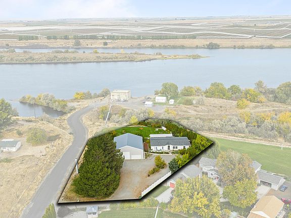 This stunning home sits on a premium 1.04-acre lot in Burbank, WA, offering breathtaking, unobstructed views of the Snake River and incredible sunsets from your own backyard. Built in 2003, the 2,720 sq ft home features modern upgrades, a spacious kitchen, formal dining room, and a cozy living room with a modern fireplace and direct access to the patio. Large windows throughout the home flood the space with natural light and perfectly frame the stunning river and sunset views. The large primary suite includes a spa-like en-suite bathroom, while the property also offers mature landscaping, room for a pool, and a greenhouse for gardening enthusiasts. A true highlight is the massive 50'x60' shop featuring three garage doors—two with RV-height clearance—plus an upstairs bonus space with a sliding door that opens to a private deck overlooking the river. A bathroom is also in the shop. Whether you're looking for storage for boats or RVs, a home gym, workshop, studio, or business space, this shop offers endless options to suit your needs. This unique and private property offers country living at its finest with easy access to town. Don’t miss this rare opportunity to own one of the best view properties in Washington State.