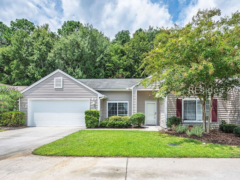 Come see this well cared for Clayton model located in Live Oak Village. Close to several of the community's gates (including main gate), shopping/dining, and Sun City Town Square. The home is freshly painted and has newer luxury vinyl plank flooring, a tankless water heater, and an HVAC home air defense system. Open floorplan with flex office/den space. The outside has a covered screened porch area backing to a private wooded view. This is an end unit with a 2-car garage. Sold furnished.