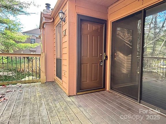 Well-kept condo in Ravencroft Condominium community, in the heart of South Asheville. This setback, "treehouse-like" condo offers two primary bedrooms. Both bedrooms have a full bath, closet space and sliding glass door for outside access. The primary suite features a spacious walk-in closet with access to utilities. Manufactured flooring cover the bedrooms, living room and kitchen. The entry to the condo opens to a welcoming living room with a gas logs and seamless access to dining area and kitchen breakfast bar. The kitchen includes a refrigerator, oven/stove, dishwasher. The convenient, kitchen access laundry pantry gives room for storage with a stacked washer/dryer to convey. The storage closet is off the front patio, with quick access from the front entry. Located in a quiet community in South Asheville, you’ll enjoy a convenient location to everyday amenities, highways, restaurants, shops. Only 3 miles South of Hendersonville Rd Exit of the Blue Ridge Parkway. The perfect opportunity for a primary, secondary or first-time home.