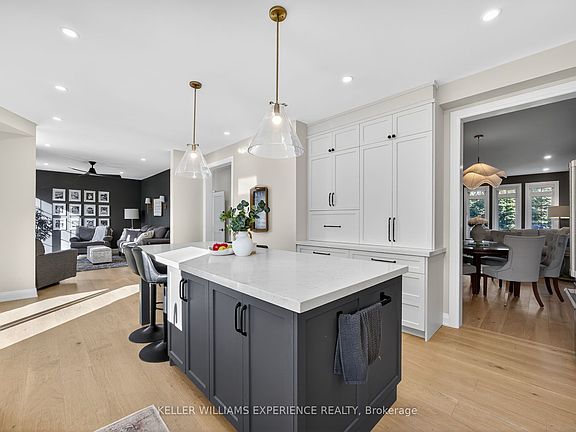 Fully Renovated Innishore Beauty Backing onto EP Land with Walk-Out Basement & In-ground Heated Saltwater Pool! Welcome to this top-to-bottom renovated all-brick 2-storey showstopper, perfectly positioned on quiet cul-de-sac on a premium with no neighbours behind. The main floor impresses with 9 ft smooth ceilings, pot lights, motorized window coverings, and wide-plank hardwood throughout. Entertain in the versatile living/dining space, or cook in your dream kitchen featuring crisp white cabinetry, quartz counters, timeless backsplash, soft-close drawers, appliance garage, and a large island that brings everyone together. Unwind in the cozy family room with a gas fireplace and private backyard views. A modern powder room and stylish laundry with herringbone tile with custom built-ins, laundry sink, and garage access add everyday convenience. Upstairs, retreat to the luxurious primary suite with a custom entertainment wall, walk-in closet, and a spa-inspired 5-piece ensuite with heated floors, dual vanity, and standalone tub. Three additional bedrooms share an updated 5-piece bath. The walk-out lower level is an entertainers dream with a spacious rec room, gas fireplace, built-ins, speakers, a games area with bar with stunning custom cabinetry, a 4-piece bath with frameless glass shower, and a 5th bedroom perfect for large families or guests. Step outside to your private backyard oasis featuring a deck with glass railings for unobstructed views, lower-level patio, and inground heated saltwater pool, all surrounded by mature trees and nature. This home is truly move-in ready and made for modern family living.