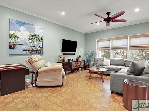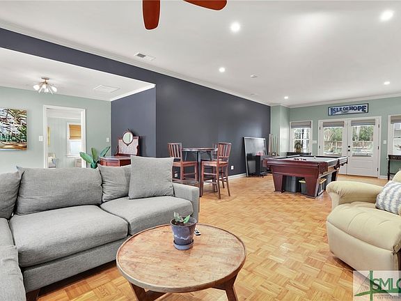 Spacious Isle of Hope cottage in Wymberley, on a gorgeous corner lot on oak-lined Richmond Drive. Split level home has large primary bedroom with ensuite bath, marble double vanity, separate tub and shower, walk in closet and fireplace. Large family room with bar perfect for watching your favorite games or playing pool. Two beds & one bath with shiplap-accented wall on opposite side of house for optimum privacy. Guest bath is also full bath for plenty of room to accommodate visiting friends and family. Large French doors lead out onto covered porch for bbq cookouts, parties, large cast iron fire pit, fenced in yard. Hardiplank siding, tankless water heater, newer windows, new HVAC systems. Gorgeous new oak flooring in dining room. This wonderful family neighborhood is walkable, bike-able, run-able and is golf cart-friendly to Historic Isle of Hope Bluff, full service IOH Marina, & IOH Community Pool. Deepwater community dock is an optional membership for Wymberley-only residents!